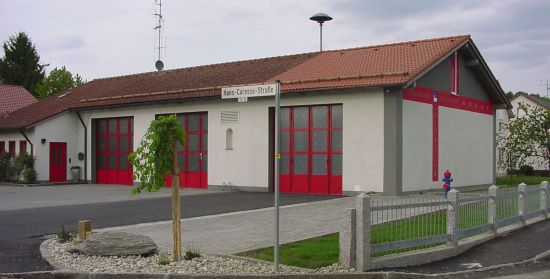 Im Sommer 1986 wurde mit den Bauarbeiten für das neue Feuerwehrgerätehaus in der Hans-Carossa-Straße begonnen. Die Wehrmänner waren entsprechend fl eißig und legten durchwegs selbst Hand an beim Bau. Nach etwas über einjähriger Bauzeit wurde das neue Feuerwehrhaus im Oktober 1987 feierlich eingeweiht und der Feuerwehr standen nun neben zwei Stellplätzen Räumlichkeiten für die Mannschaft, ein Unterrichtsraum, sowie ausreichend sanitäre Anlagen zur Verfügung.