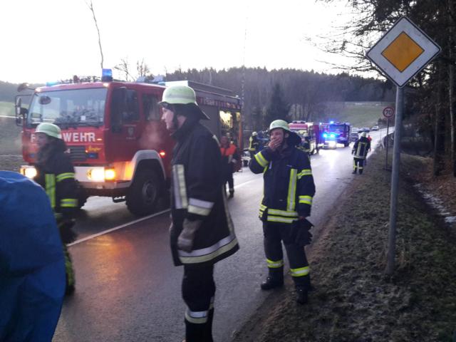 | Alarmierte Kräfte/Fachstellen: | KBI 4, KBM 4.3 , FF Hofkirchen, FF Büchl, FF Eging, FF Kirchberg v.Wald, FF Aicha v.Wald,FF Weferting, FF Hutthurm, FF Tittling, FF Salzweg, FF Straßkirchen, FF Vilshofen, FF Passau, BRK , Polizei, EON |